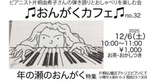 日時:12月16日火曜日11:00〜12:00 片桐仏壇店アトリエピアノにて